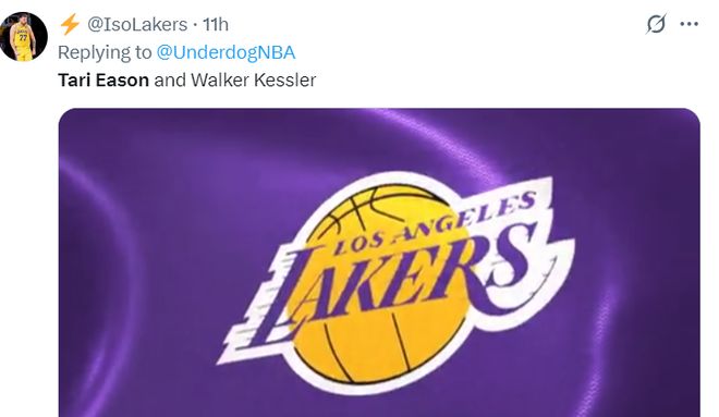 有湖人自媒体觉得如果球队可以交易得到塔里-伊森这种顶级的3D锋线,球队可以牺牲一个未来不保护的首轮签,用克内克特+2031年不保护首轮签去换伊森,这样湖人的锋线会更加充盈,明夏詹姆斯退役后伊森也可以继续辅佐东契奇。