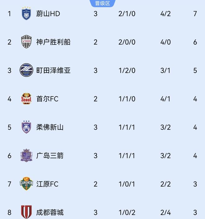随着海港+蓉城皆0-2失利,亚冠最新积分榜出炉:榜首+垫底队易主